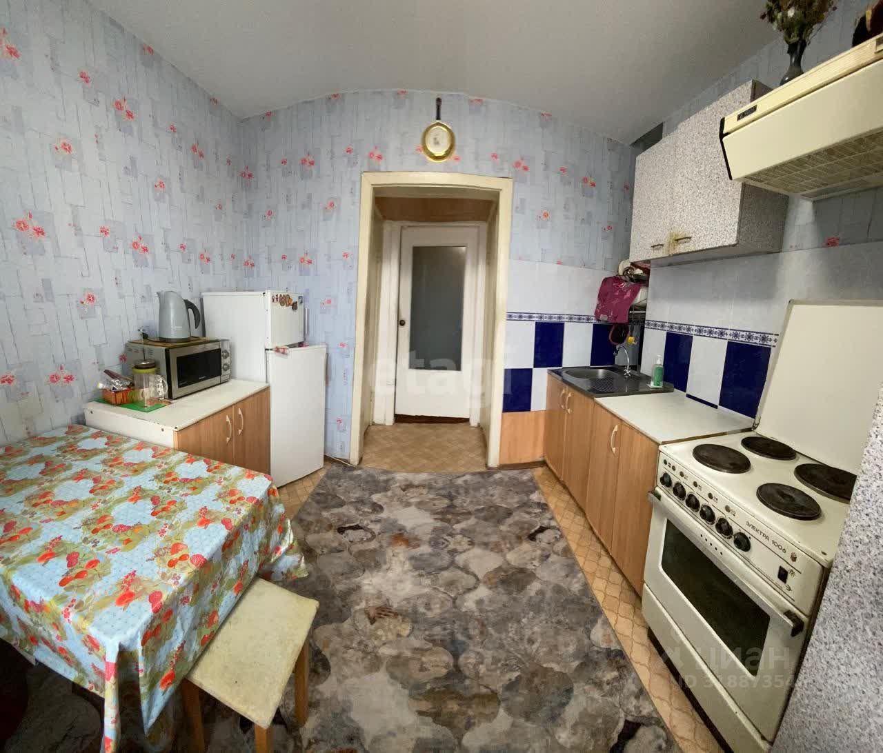 Продаётся трёхкомнатная квартира в девятиэтажном кирпичном доме. Пластиковые окна. Потолок на кухне и в одной комнате - натяжной, в остальных комнатах и коридоре обклеен плиткой ПВХ. На полу - линолеум и ковровое покрытие. На стенах - обои.