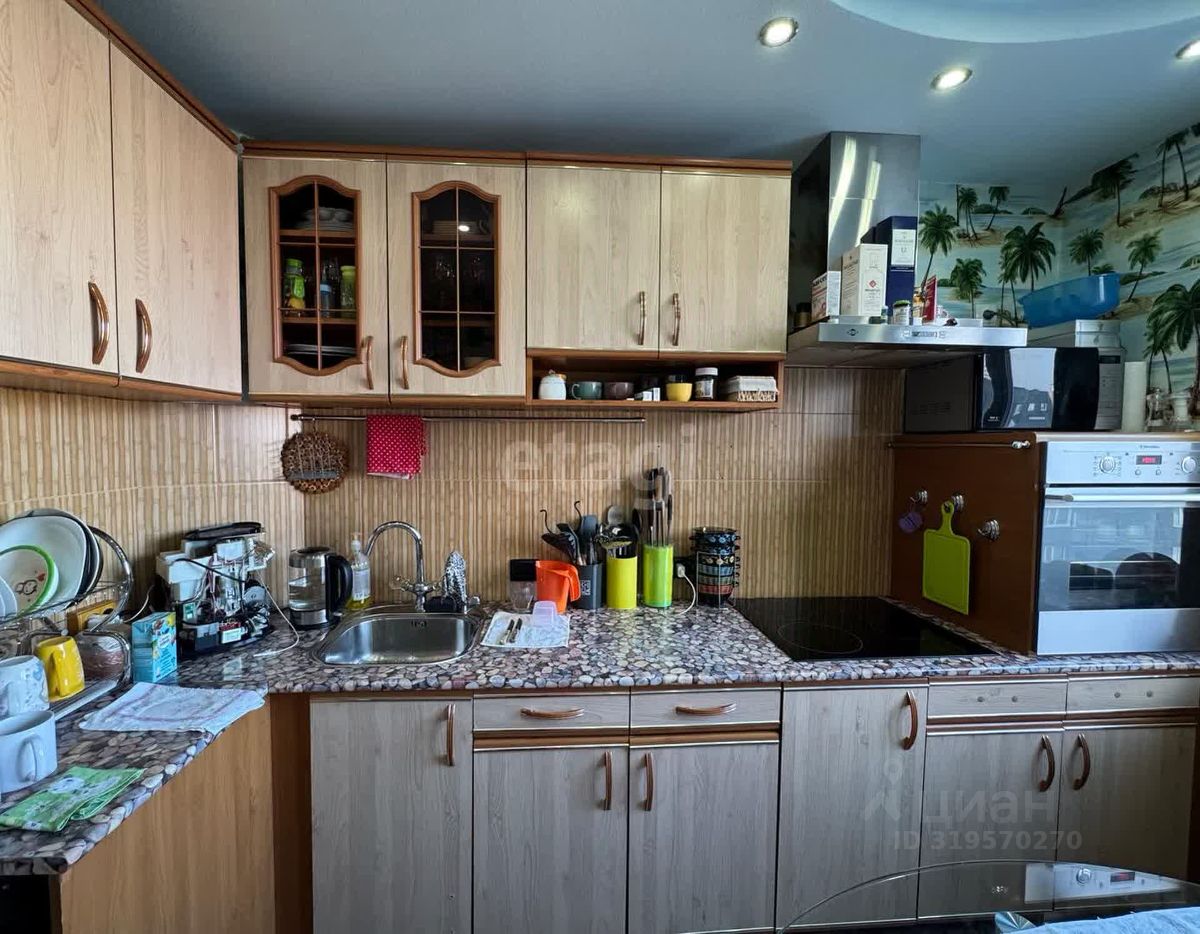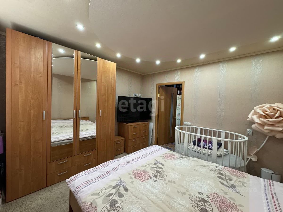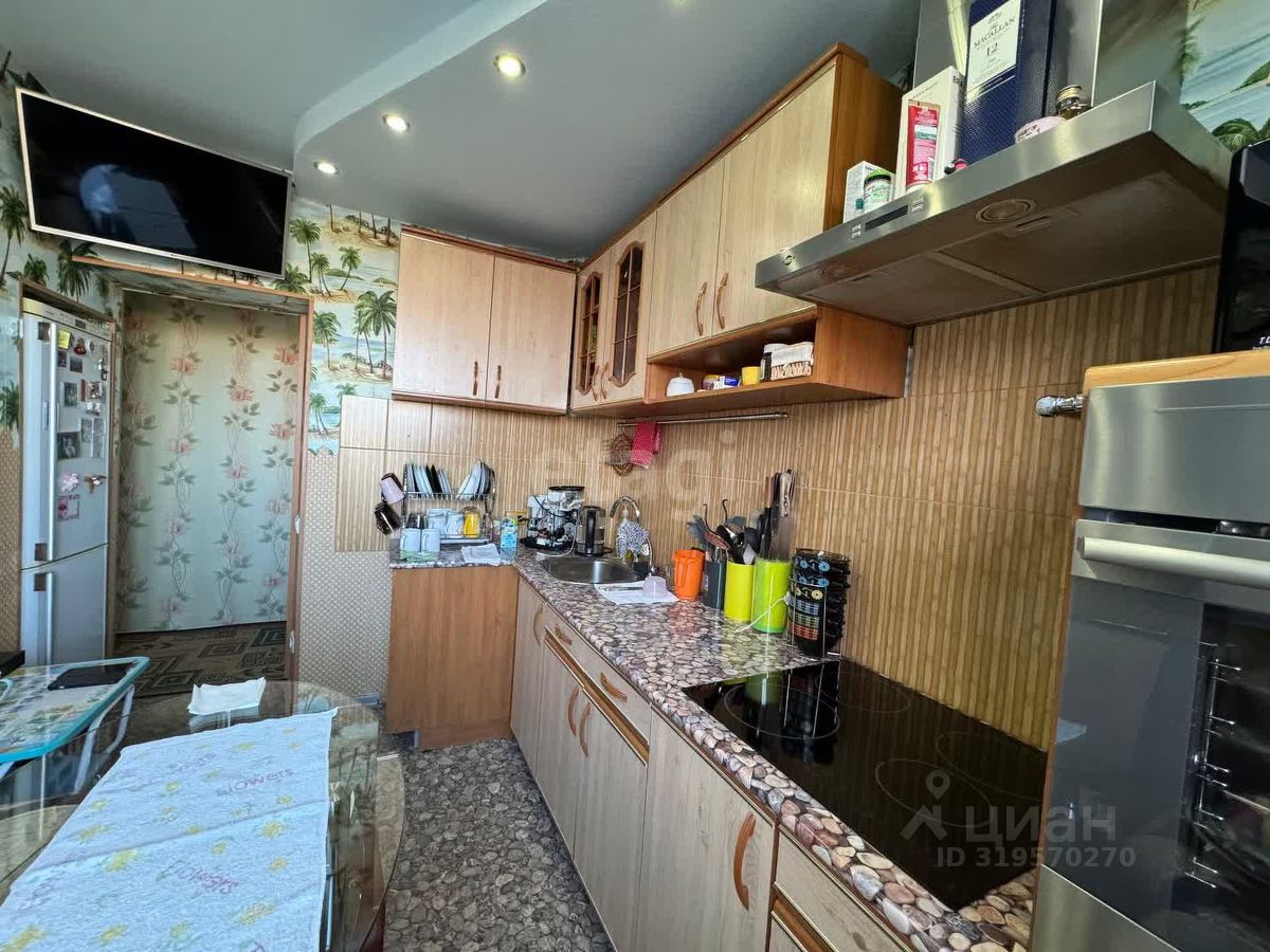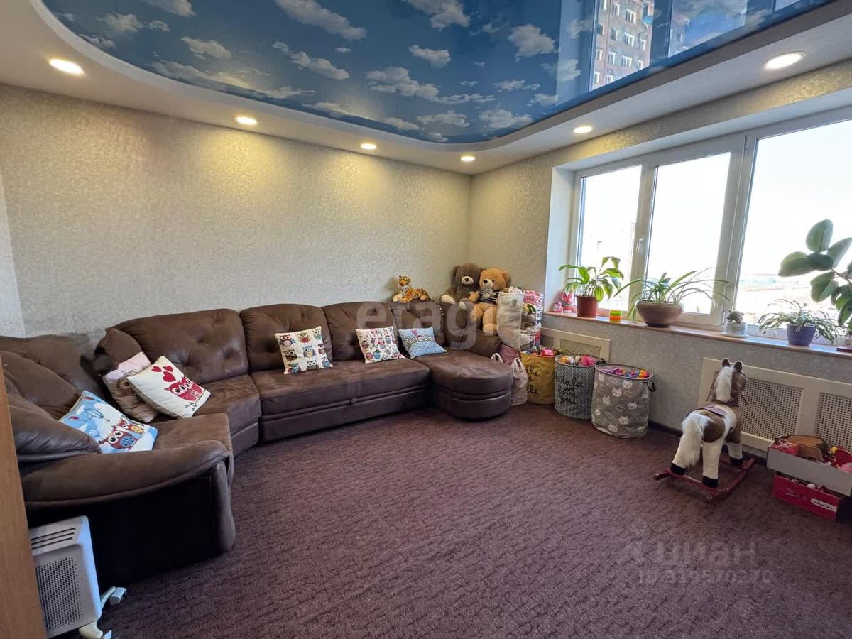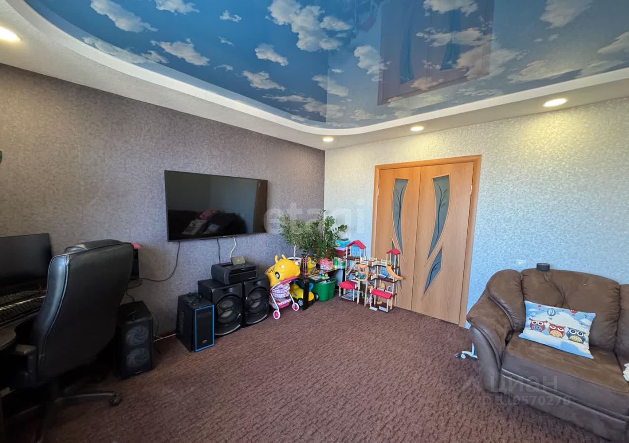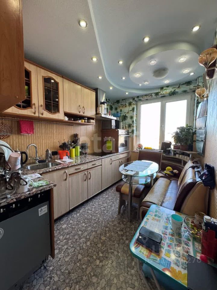 Трехкомнатная квартира в девятиэтажном панельном доме. Современный ремонт: межкомнатные двери нового образца. Во всех комнатах и коридоре на полу постелен ковролин, на кухне - линолеум. Все окна ПВХ. Балкон застеклен. По всей квартире дизайнерский потолок выполненный из гипсокартона с точечным освещением. Есть кладовая.
