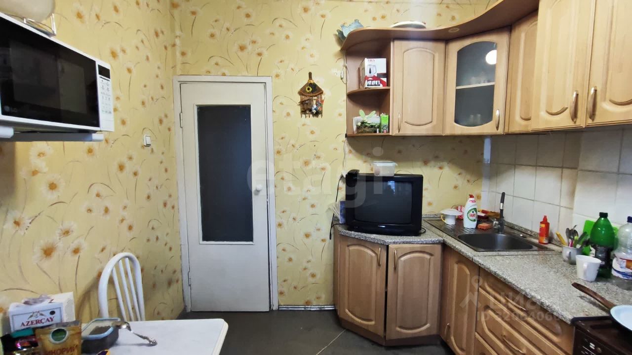 Трёхкомнатная квартира на средне этаже в девятиэтажном панельном доме. Пластиковые окна. Потолок обклеен плиткой. На полу постелен линолеум. На стенах - обои.