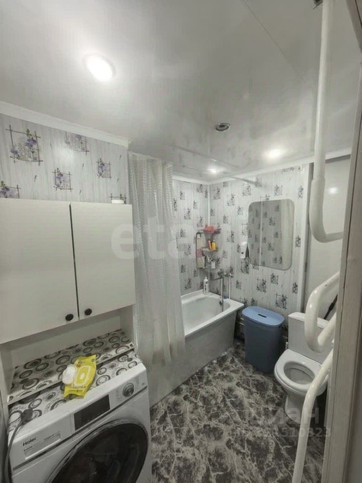 Сан. узел совмещённый. Стены обшиты панелями, пол облицован кафельной плиткой.