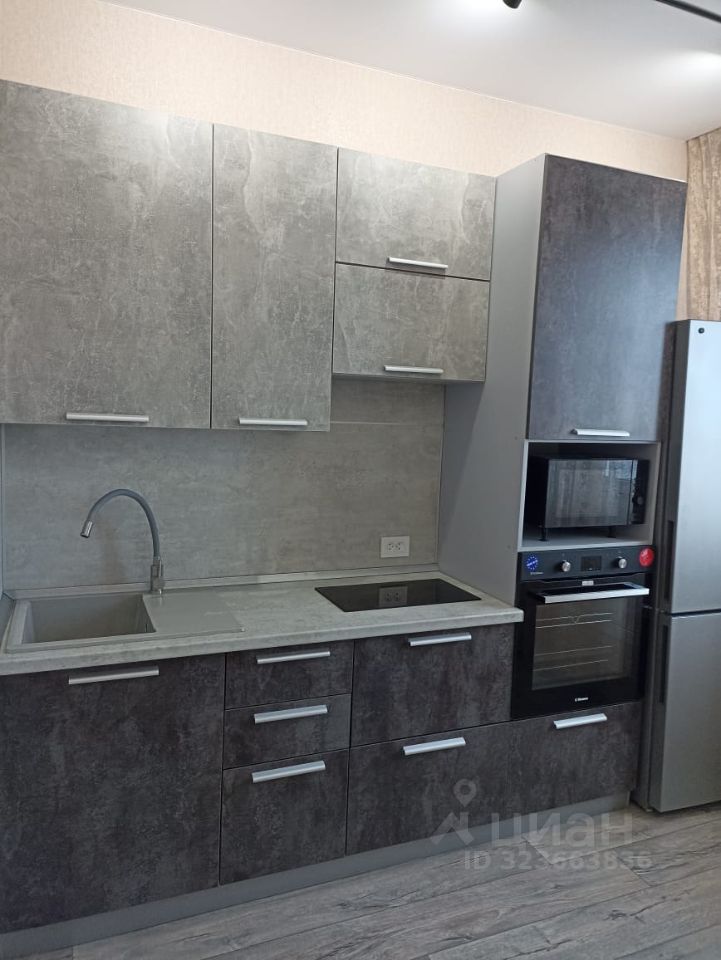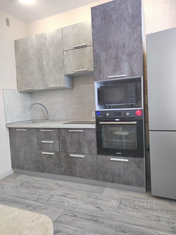 Есть ВСЯ бытовая техника, вся новая, т.к. потолок 2,8 м, то холодильник кажется маленьким, а он 1,8. Телевизор 43 дюйма. Есть отдельный самоочичающийся духовой шкаф и т.д.