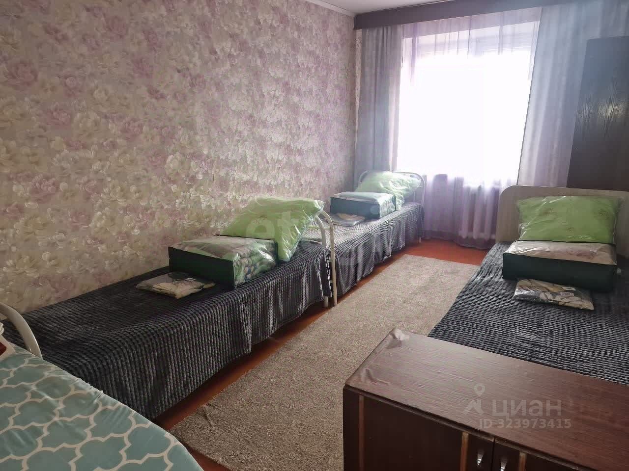 Сдаётся трёхкомнатная квартира на среднем этаже в кирпичном доме. Окна деревянные. На полу постелен линолеум и ковровое покрытие.