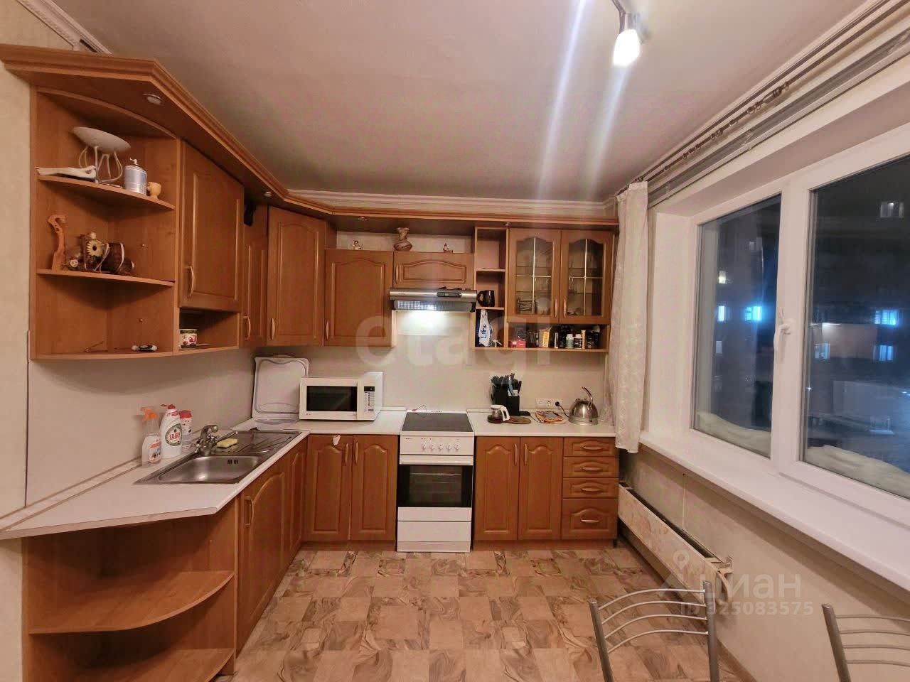 В квартире выполнен частично косметический ремонт, одна комната требует ремонта: окна ПВХ, натяжные потолки, радиаторы отопления медные, входная дверь современного образца, полы бетонного перекрытия, застелены линолеумом.
