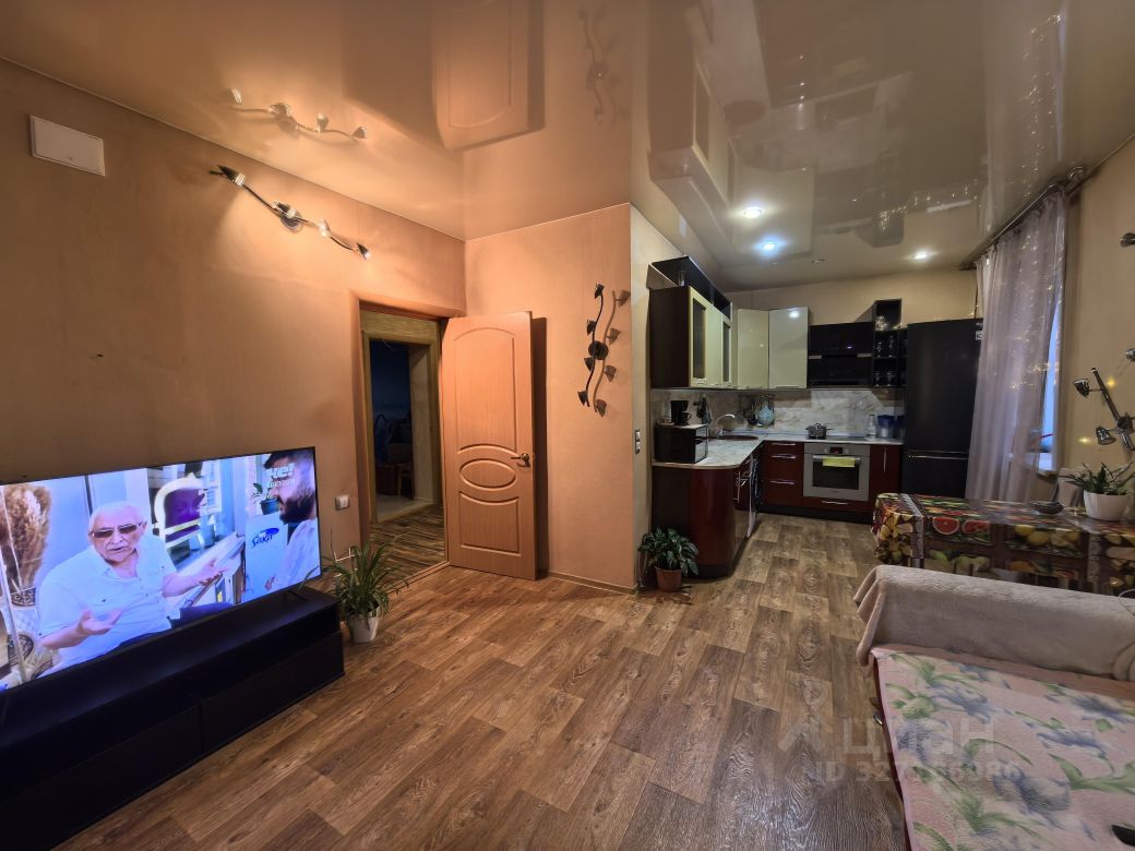 Совмещенная кухня с комнатой, что образует большую зону, + еще 2 изолированных комнаты, фотообзор дополню по желанию, собственник один, прописано 2, квартира жаркая, соседи тихие спокойные, в соседнем здании детский сад, через дорогу школа, вся мебель, техника, шторы остаются, а также посуда при необходимости. Квартира полностью готова к проживанию.